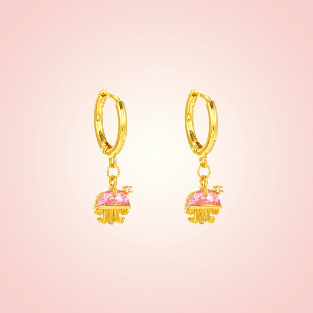 A dainty splash of magic from under the sea. These adorable hoops feature graceful jellyfish charms adorned with soft pink cubic zirconia. Delicate, dreamy, and full of ocean charm - it’s your new favorite statement of sweetness.